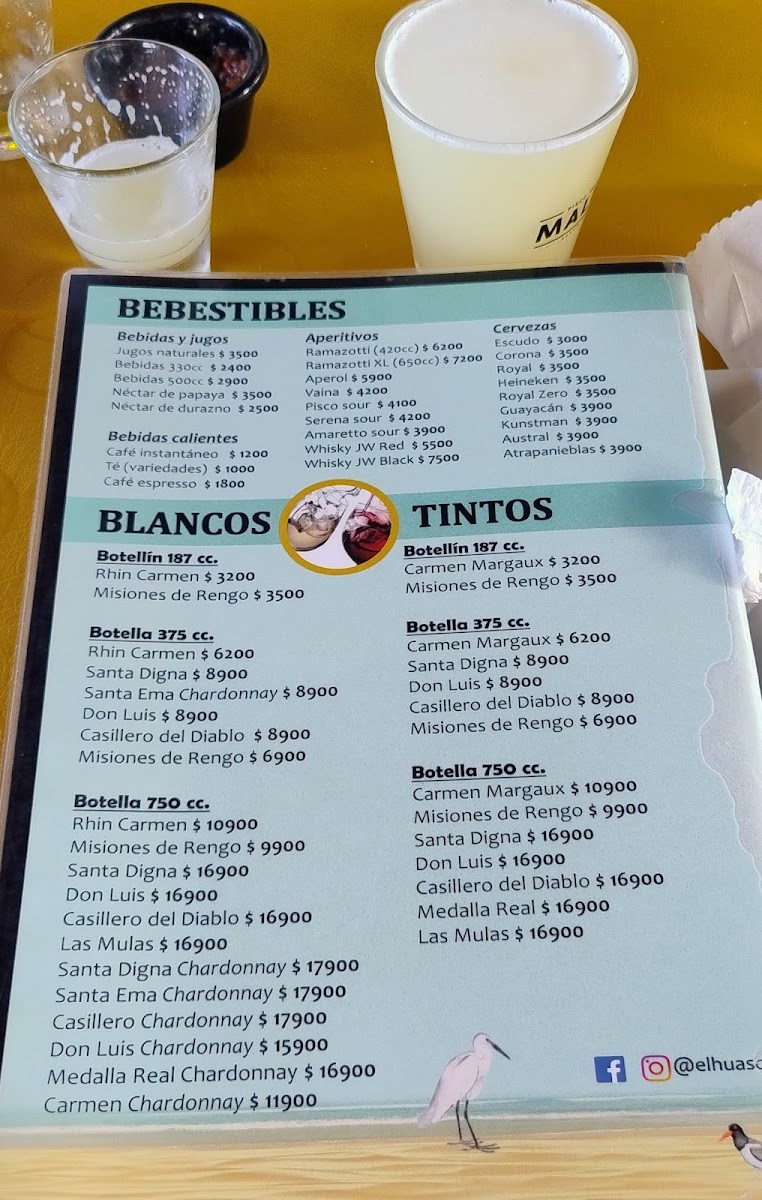 Introducing the Menu at Restaurante El Huaso Mirra
